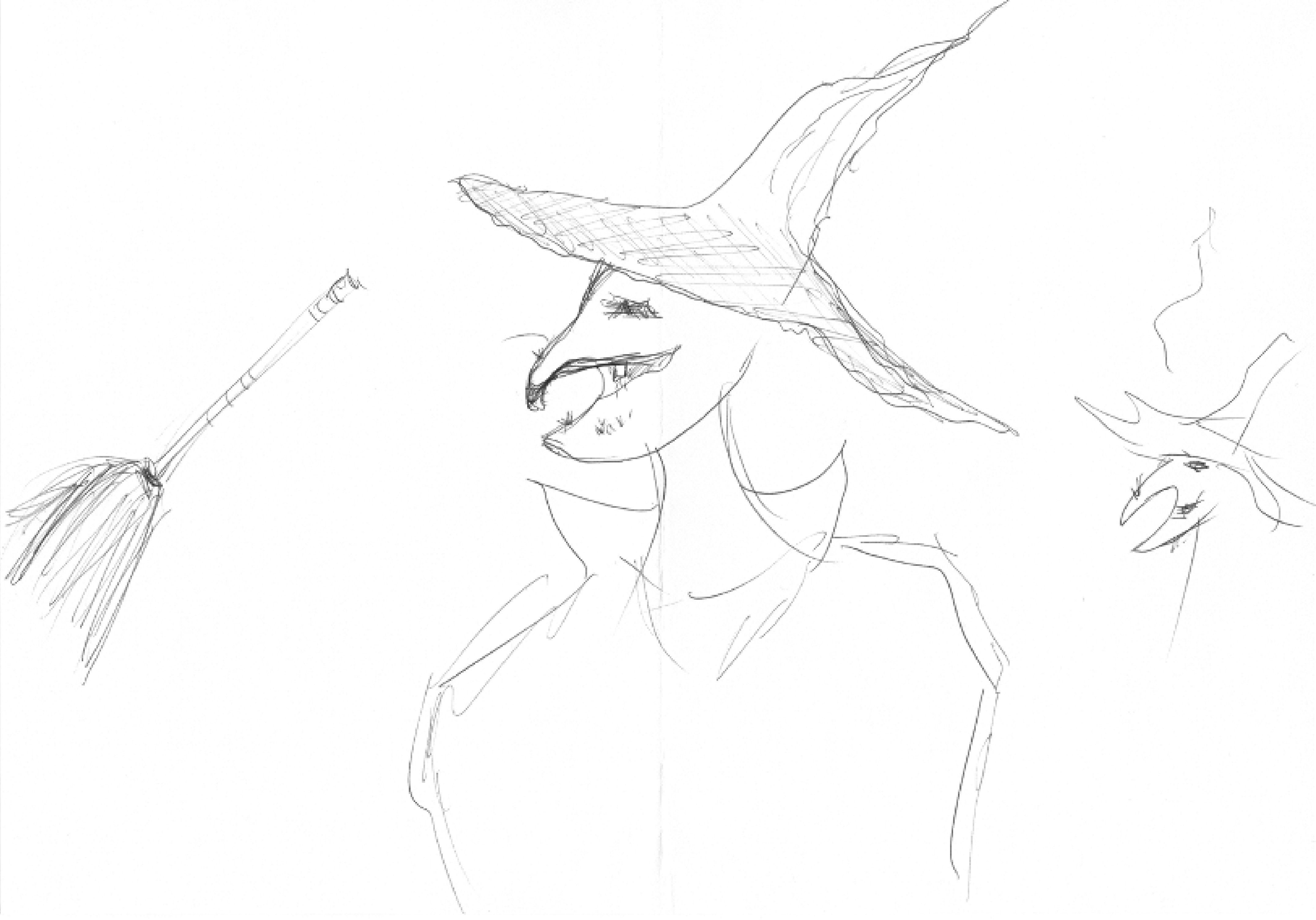 We aimed to show how mental maps could be a useful tool to encourage people to express emotional experiences linked to their past or present involvement in cultural activities and social relationships related to digital spaces. One limitation of our method is that the mental maps thus produced are not easy to understand without the comments of the people drawing them. In other words, “stories don’t come from the map,” as Mark Denil puts it (2016, 7). All maps require interpretation, and in our case, we sometimes needed to know which digital space (or which part of it) had been drawn, or even which video game had been chosen, particularly as some of them were not immediately recognizable. As Avry (2012) points out, a mental map does not show space as it is, but space as it is perceived. For instance, Françoise’s mental map of the video game World of Warcraft can seem very puzzling. This online role-playing game depicts a fantasy world where players explore dungeons, slay monsters, and collect treasures. Françoise decided to draw not the map of the in-game world (or a portion of it), but rather a portrait of a witch, recognizable by her pointy hat and her broom, items associated with witches in folk culture (see Figure 8).