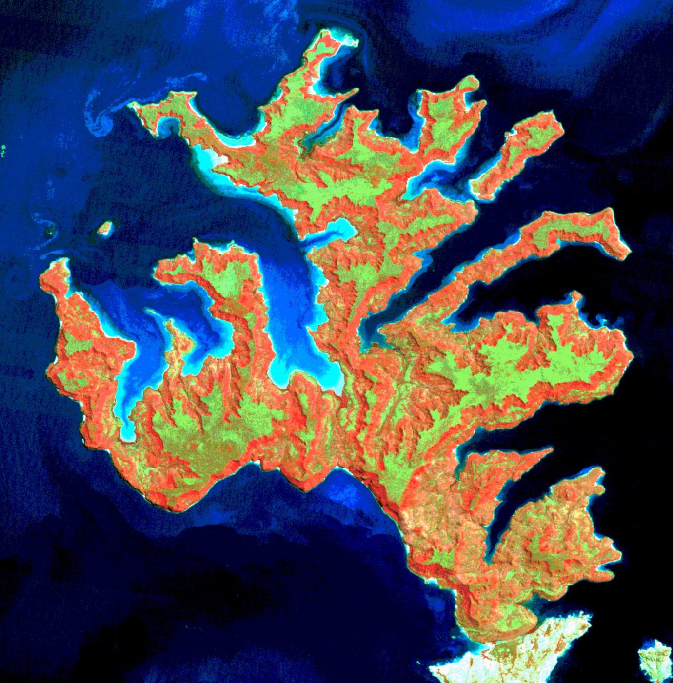 Defining the different categories of maps was largely an exercise in elimination. This process started ambitiously with the following categories of maps initially collected for each paper: no maps, basic location maps (Figure 1), cartoon maps (schematics showing spatial relationships, but not necessarily tied to a particular location in the real world; Figure 2), analysis results maps (Figure 3), airphotos/imagery as location maps (Figure 4), and airphoto/imagery analysis results (Figure 5). In the end, not only were some of these relatively rare (e.g., cartoon), but distinguishing among the different types was sometimes difficult. For simplicity’s sake and consistency of data collection, these groups were collapsed into three categories: no maps, location maps, and analysis maps. The guiding principle applied to differentiate between the second two categories was: are maps integral to the analysis and presentation of results, or are they present only to communicate basic location information? If the paper had both location and analysis maps, it was assigned to the analysis maps category.