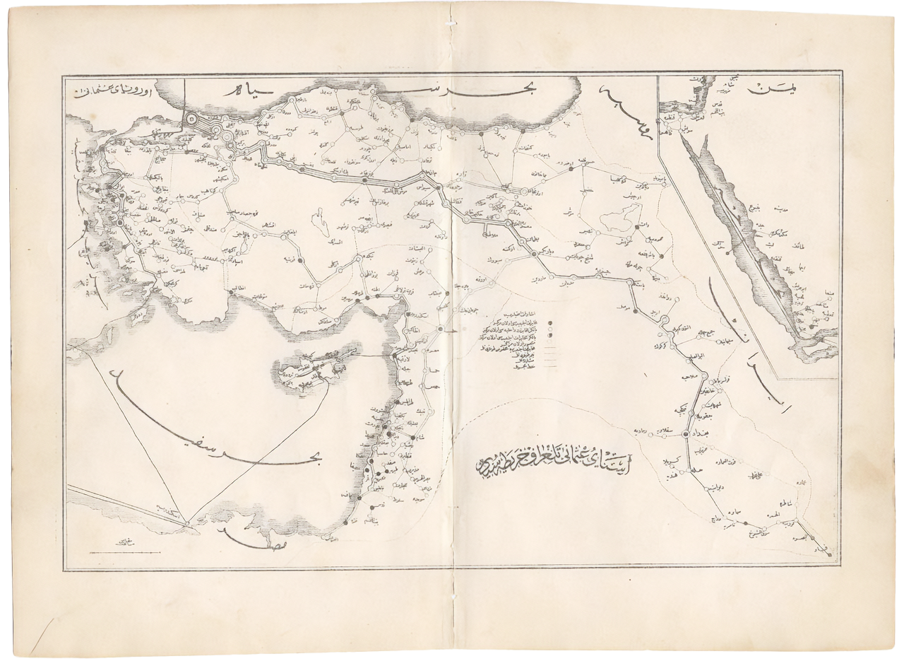Figure 2. Ottoman Empire telegraph map, nineteenth century. Kashida-justified labels are placed on several physical features and countries.