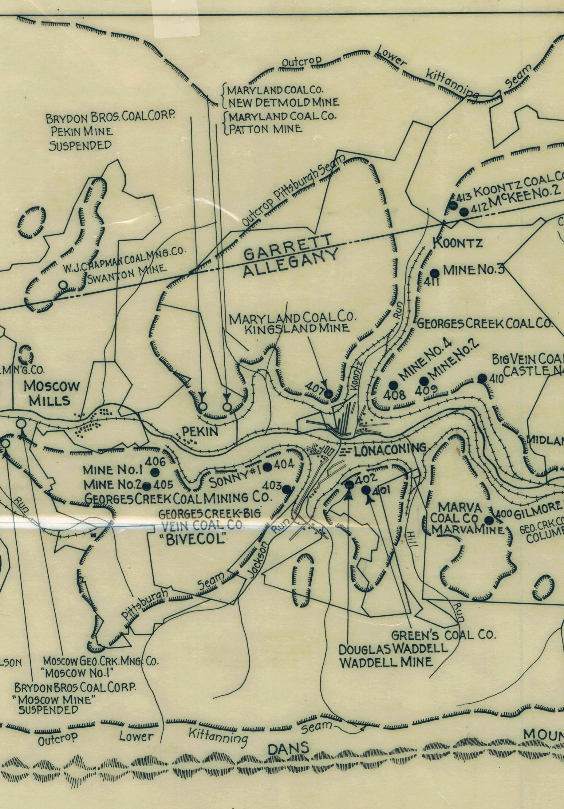 Figure 4. Detail of the Coal Region of Allegany and Garrett Counties, Maryland, showing the “Big Vein” Pittsburgh Seam. Photo by V. Williams.