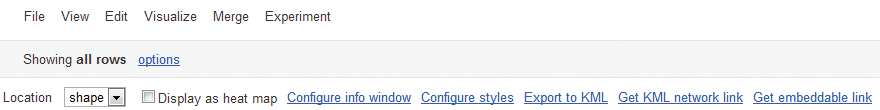 Configure styles” is used within Fusion Tables to control the display of the map. Figure 1 shows the default layout of the different tabs under visualize. “Configure styles” allows the user to manipulate the display of points, lines, and polygons on the map.