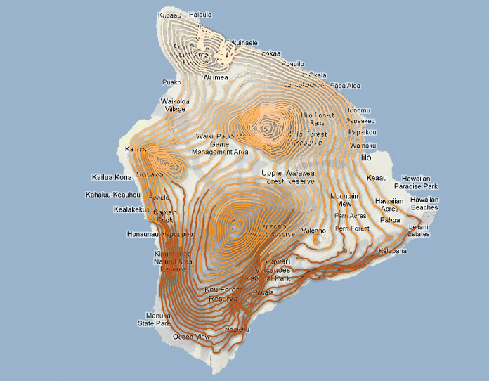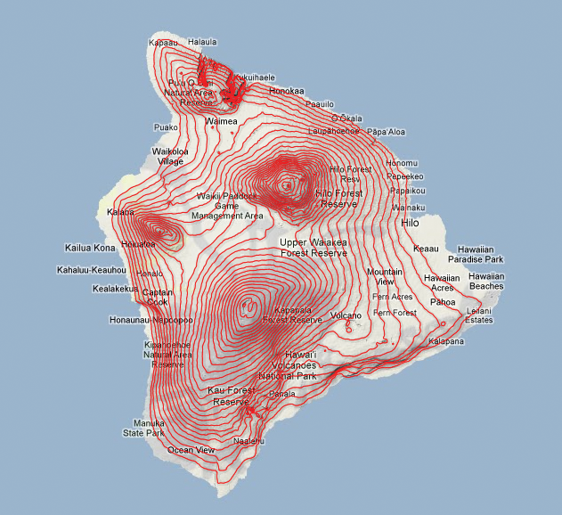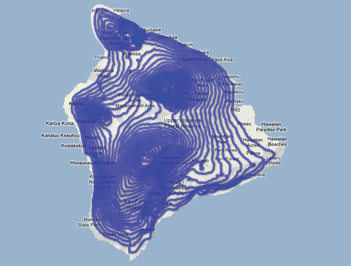 Shrader, William. 2012. “Contours Fusion Table, Hawaii’s Big Island, 500ft contours.” http://wshrader.hostei.com/CM11/page2.html.