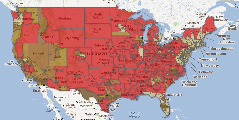 Figure 9. A map defined in Fusion Tables showing the percent of population born in Mexico for each Congressional district.