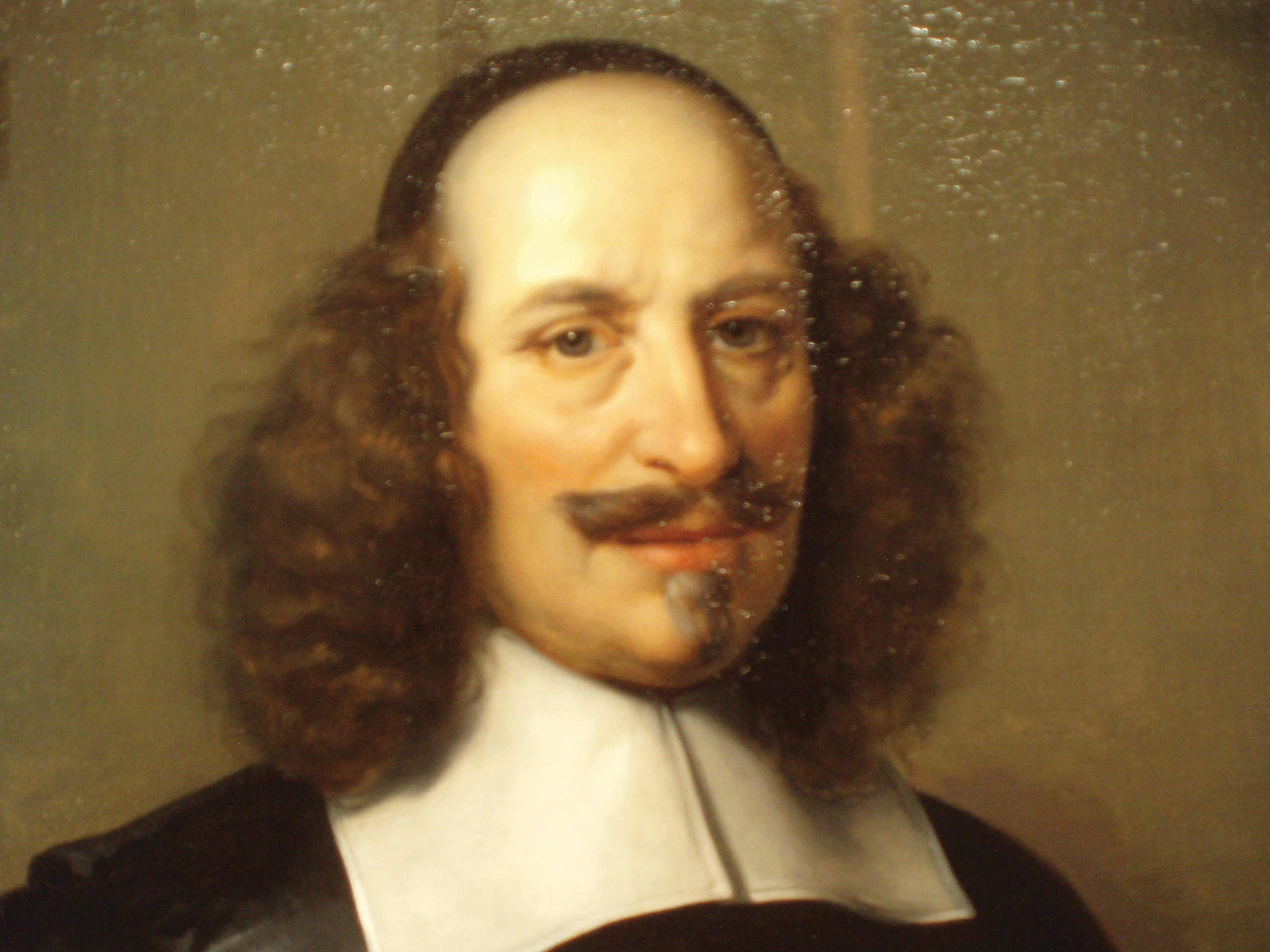 Figure 1: Detail of a portrait of Joan Blaeu by Johan van Rossum (1660). Famous throughout Europe, Joan Blaeu was called the “prince of printers” (Typographorum princeps: Koeman et al. 2007, 1314n126). The original oil on canvas painting measures 122 × 96 cm (48 × 38 in) and shows Blaeu’s left hand on the 4-volume edition of the Atlas Novus (1645–1654: see Van der Krogt 2005, 7). Photographed by the author at the Nederlands Scheepvaartmuseum in Amsterdam (RB 0301).