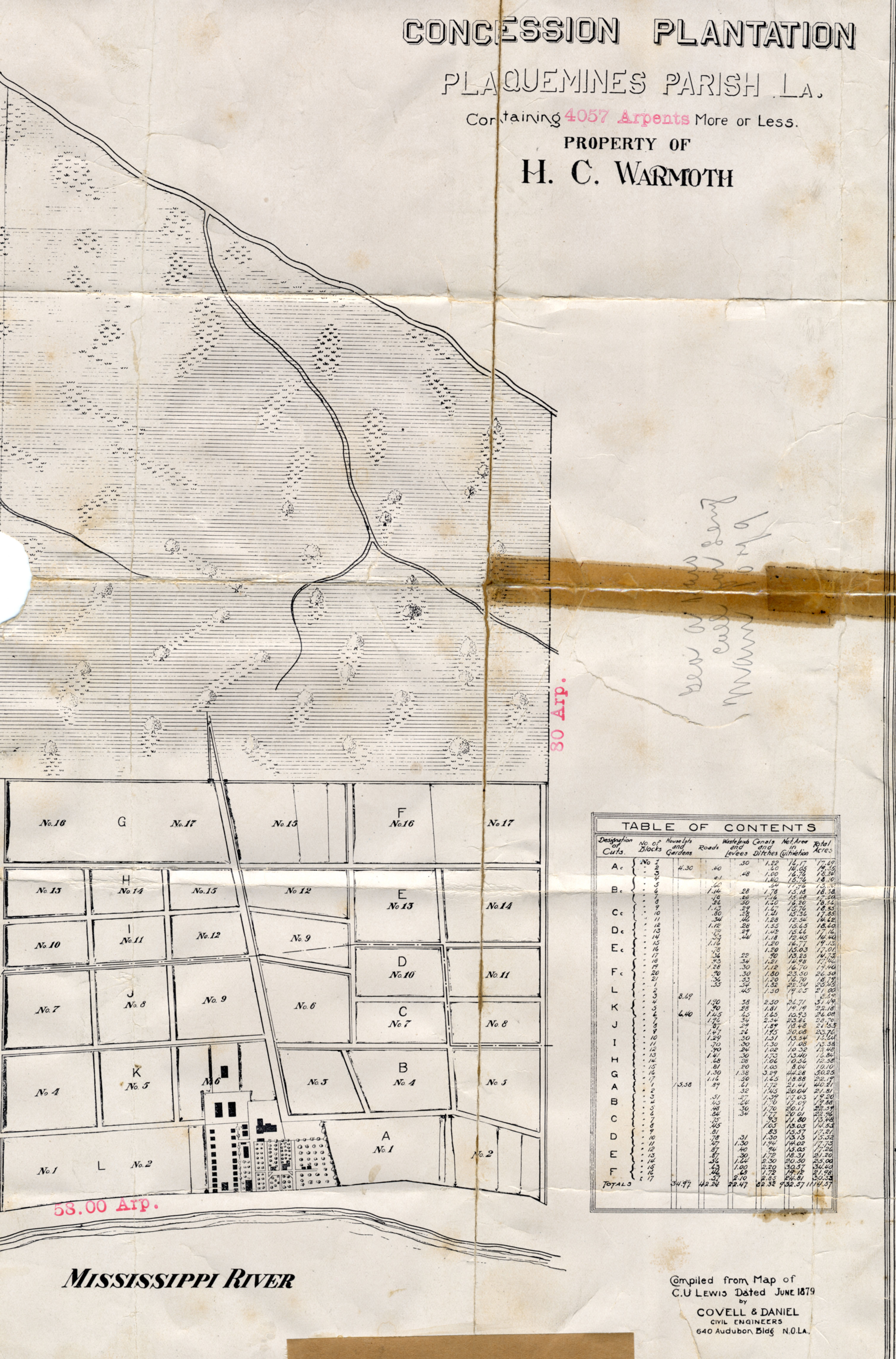 Figure 2: Covell & Daniel, Concession Plantation, Plaquemines Parish, LA containing 4057 Arpents More Or Less / Property of H.C. Warmoth / compiled from map of C.U. Lewis Dated June 1879.