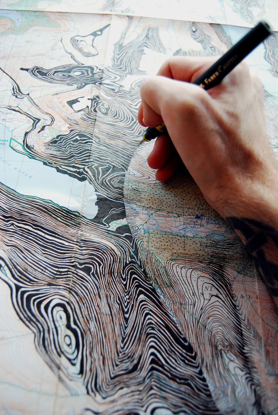 I think it’s both the satisfaction of synchronizing the human form with our landscapes and the excitement of actually revealing those landscapes through a pencil that makes this project an ongoing one. Sometimes I wonder how many miles, to the respective scale of each map, my pens and pencils have travelled. Each sweeping stroke is far enough.