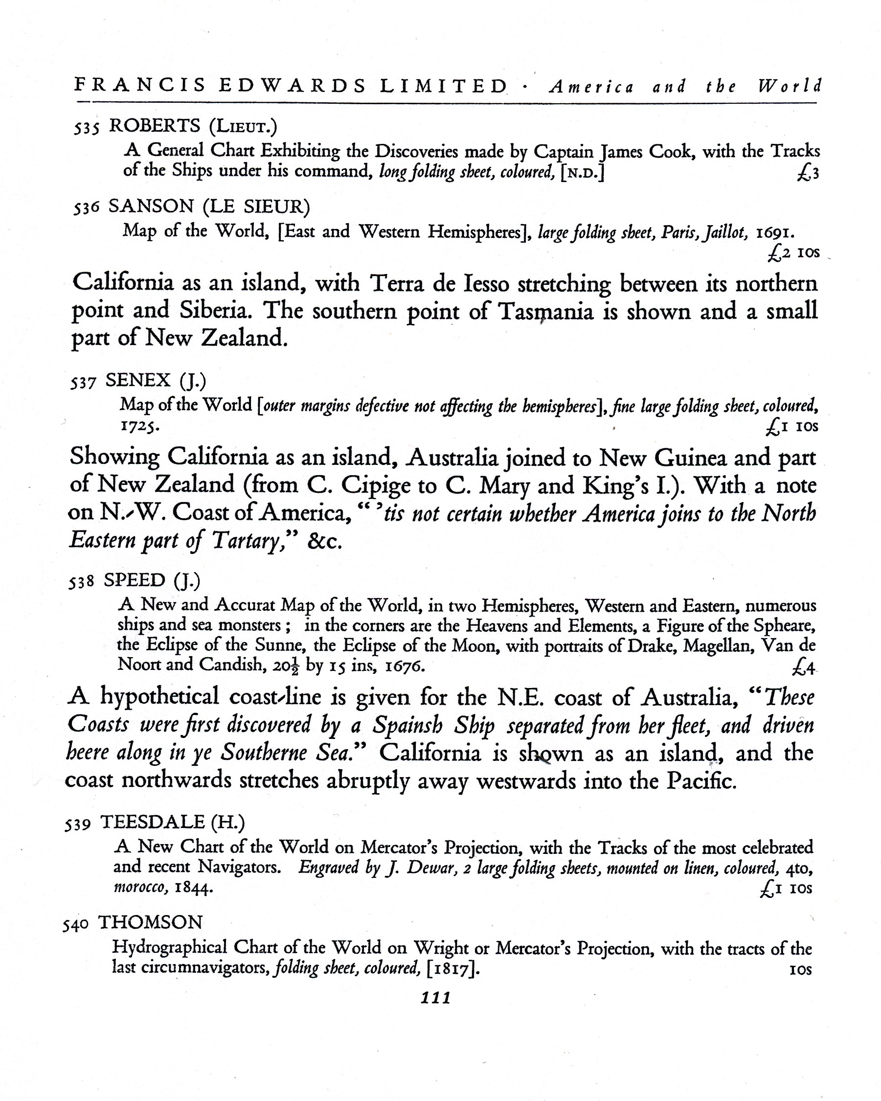 Francis Edwards (Firm). 1926. Atlases & Maps: being a Supplementary List to Catalogue 475, Old Time Cartography. London: Francis Edwards.