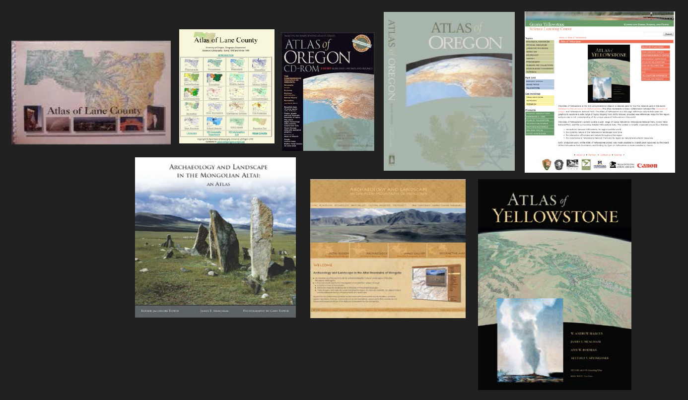 Jacobson-Tepfer, Esther, James E. Meacham, and Gary Tepfer, 2010. Archaeology and Landscape in the Mongolian Altai: An Atlas. Redlands, CA: ESRI Press.
