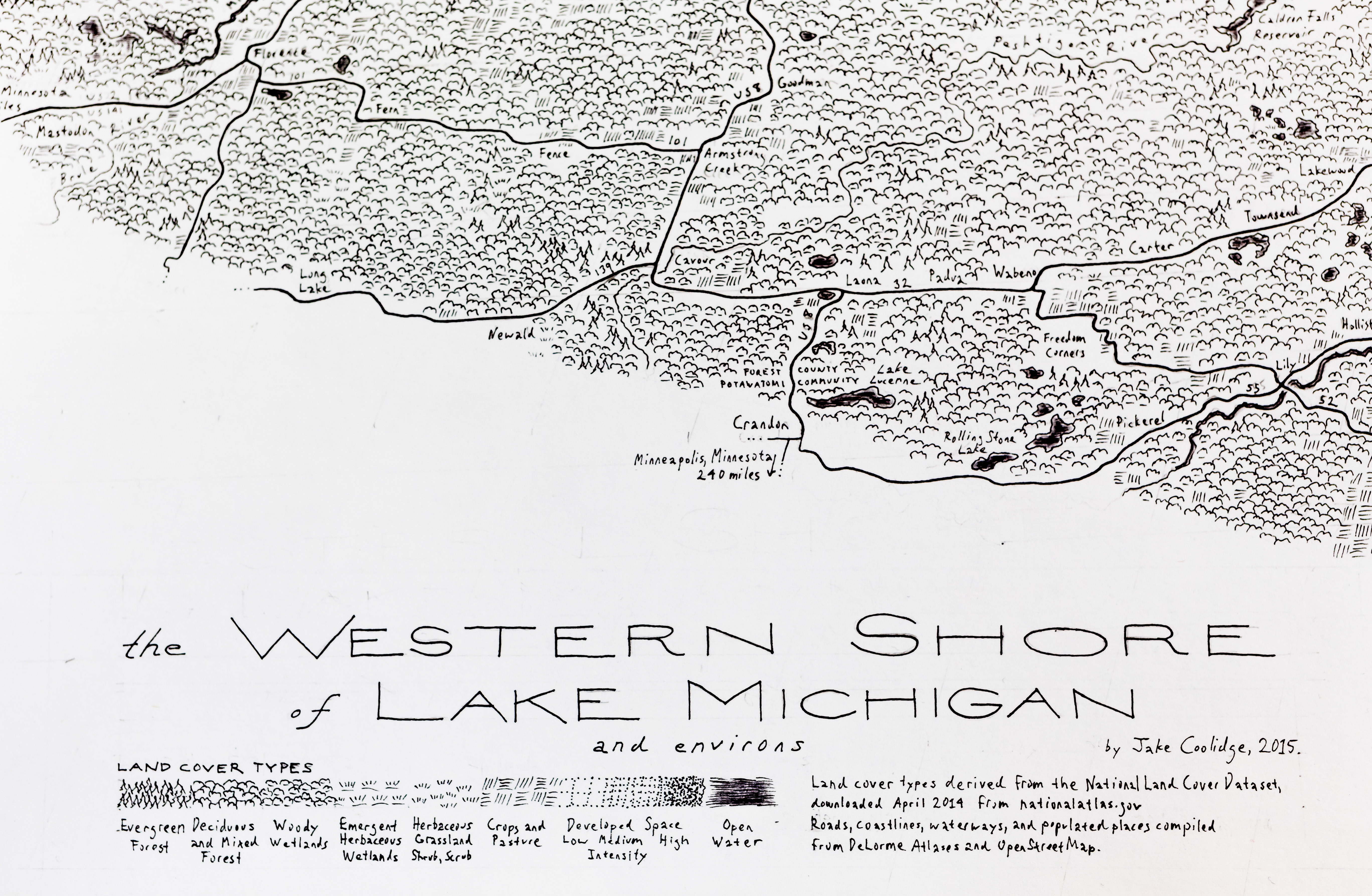 “I create maps by hand that invite viewers to consider the expressive capabilities of maps and the hand of the cartographer in shaping their visual outcomes. All maps, however produced, are human creations and should be engaged with and interrogated accordingly.”