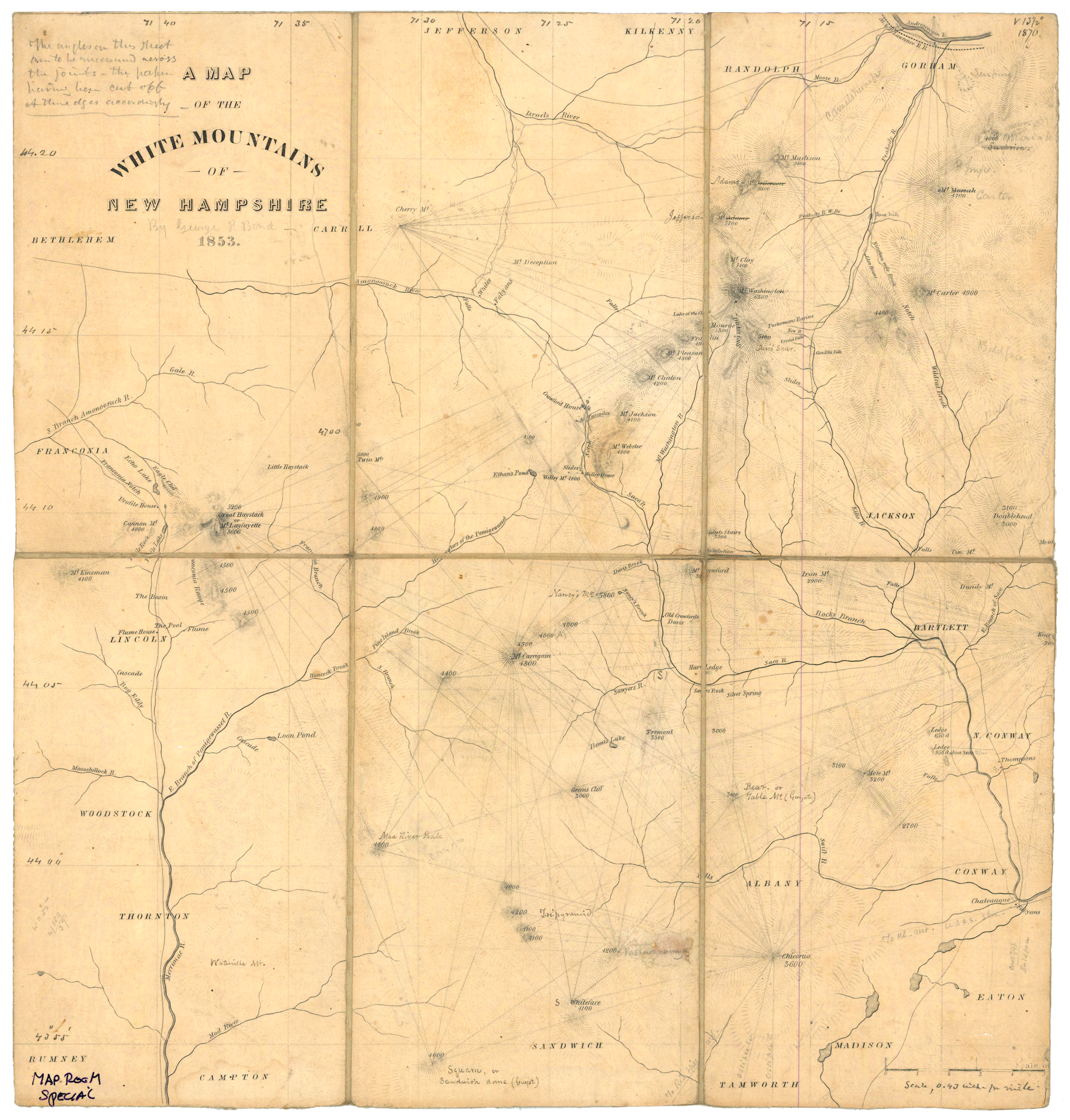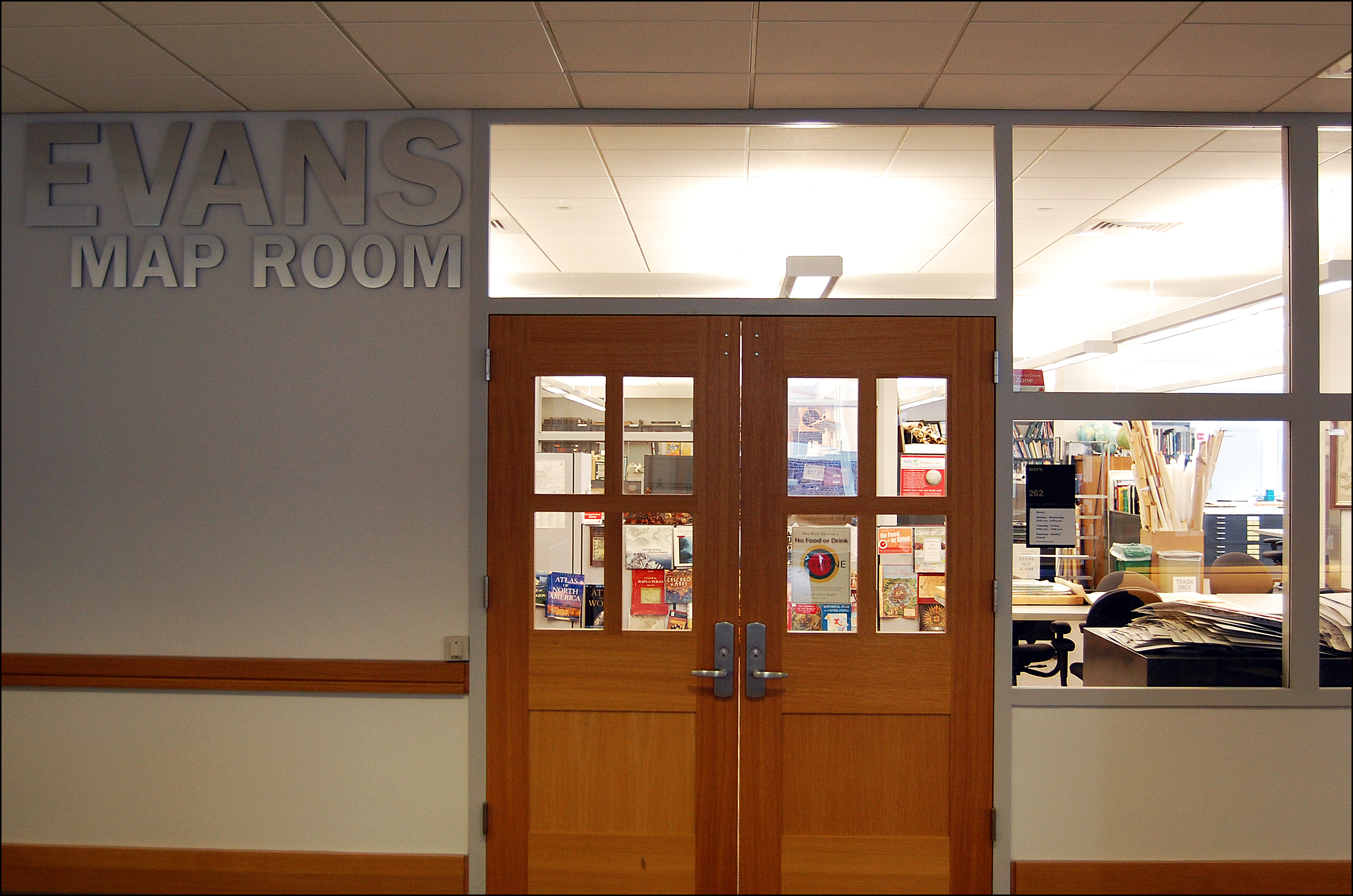 Dartmouth College Library’s dedicated map collection originated during the tenure of Nathaniel L. Goodrich, who served as the Librarian of the College from 1912 to 1950. Housed in the bright and sunny Evans Map Room, it provides cartographic coverage for the entire world, and has grown over the years from 31,000 items in 1946 to almost 200,000 by 2014. Additionally, atlases of all subjects and sizes are scattered throughout the Library’s other collections.