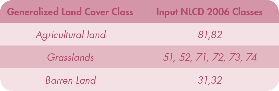 Table 1. The input NLCD classes aggregated by reclassification into each of the three product classes.