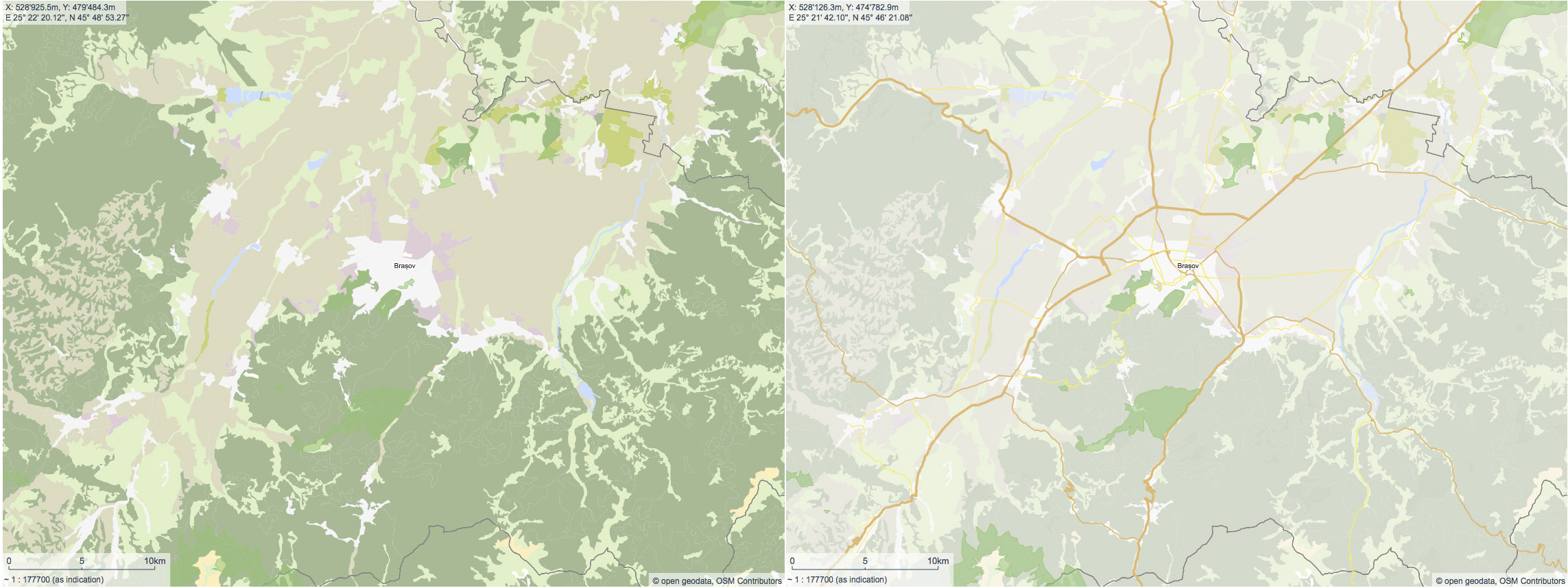 Due to the fact that the scenario and defined task were precise, the participants reached similar end results during the test. They all managed to create the map according to the scenario. We show in Figure 10 one example of a map before & after the layer re-ordering and background modifications. Layers that were initially hidden, such as the road network, are no longer hidden and the strong background layer of land use has been de-emphasized. These changes improved the legibility and comprehension of the map by providing a clearer visual hierarchy of the map content and prevented unwanted feature overlaps.